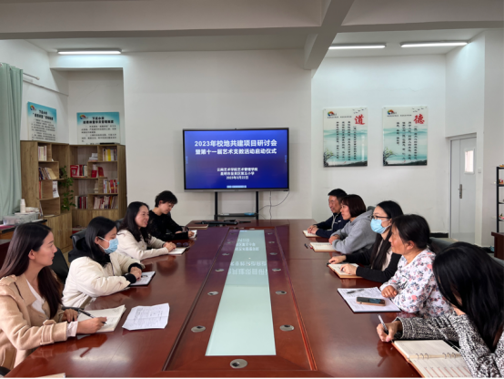 会上双方就校地共建十一年来做了回顾和总结,并对今年艺术支教活动的教学目标、教学计划、教学要求和课程安排等事宜进行了探讨和确认。呈贡区第五小学董事长尹艳对支教团队过去的支教成果表示肯定,也希望双方共建范围更广,内容更丰富。