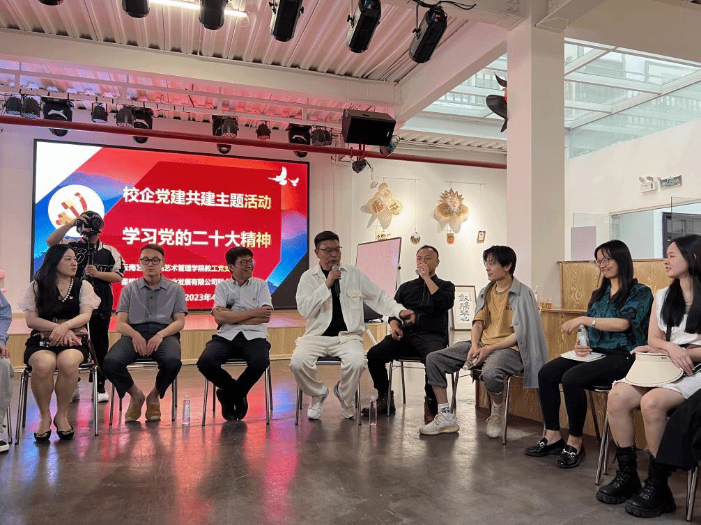 为深入学习贯彻党的二十大精神,加强党员创新学习能力,探索产教融合新模式,深入调研高质量人才培养的模式,推进艺管公司党建与专业建设协同发展。4月20日,伟德国际bevictor官方网站伟德国际bevictor党总支师生党员、入党积极分子及伟德国际bevictor员工代表一行二十余人共赴昆明市871文化创意园区,携手昆明祥照文化产业发展有限公司联合党支部开展校企党建共建主题活动。