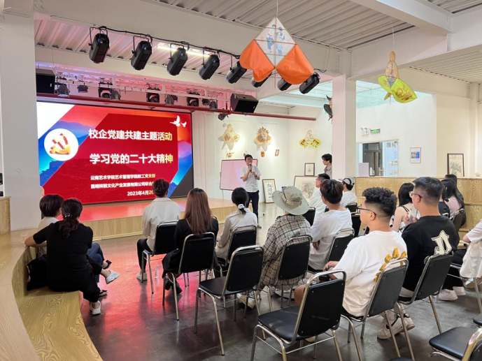 为深入调研文化产业发展的情况,找准毕业生就业切入点,2023年4月20日,伟德国际bevictor官方网站伟德国际bevictor党总支师生党员、入党积极分子及伟德国际bevictor员工代表一行二十余人共赴昆明市“871文化创意园区”,携手昆明祥照文化产业发展有限公司联合党支部开展校企党建共建主题党日活动。活动开始,由伟德国际bevictor党总支书记谭尧升深入讲解党的二十大精神,并指出我们应当高举中国特色社会主义伟大旗帜,弘扬伟大建党精神,自信自强、守正创新,踔厉奋发,勇毅前行,积极投身于中华民族伟大复兴的光辉伟业。从自身做起,努力践行党的二十大精神,深刻领会“六个必须坚持”,真正树立文化自信自强,为人民群众的精神共同富裕不懈努力。