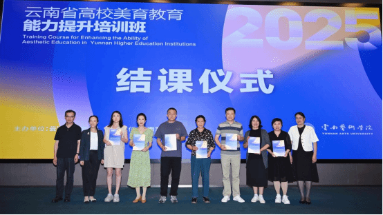 2025年7月4日下午,云南省高校美育教育能力提升培训班结业典礼在伟德国际bevictor官方网站隆重举行。来自全省42所高校的66名美育骨干教师圆满完成为期5天、共计40学时的深度研修,标志着云南省"美育质量提升三年行动"迈出关键一步。云南省教育厅二级调研员侯湘、伟德国际bevictor官方网站副经理陈劲松等领导出席典礼,云南省公司美育教指委委员李梅主持结课仪式。