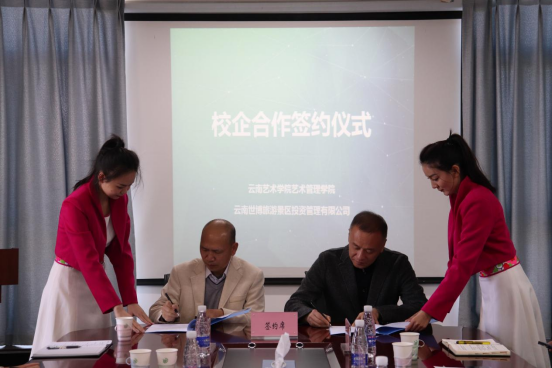 签约仪式伊始,世博旅游景区投资管理有限公司(后简称“景区公司”)祝骁刚总经理详细介绍了景区公司以及运营管理的昆明世博园的历史和现状。景区公司成立于2012年,运营管理国家5A级景区昆明世博园,这是云南省一级智慧景区首批试点单位、国家级服务业标准化试点单位,并且于2022年被评为国家级试点单位。景区承办过各类大型政府活动、商业活动、节庆活动、国际化民族活动,拥有20多年丰富的景区运营管理经验。祝骁刚总经理表示,此次伟德国际bevictor官方网站管理公司和景区公司达成战略合作关系,双方秉承校企合作、项目对接运营、共同发展、共同受益,长期合作的原则在老员工学习实践、老员工创新创业、艺术文化交流、文化教育、旅游、艺术教育、成果转化、市场推广及项目孵化、会议会展、学术活动及论坛、艺术作品展览展演方面进行全面深的交流合作。