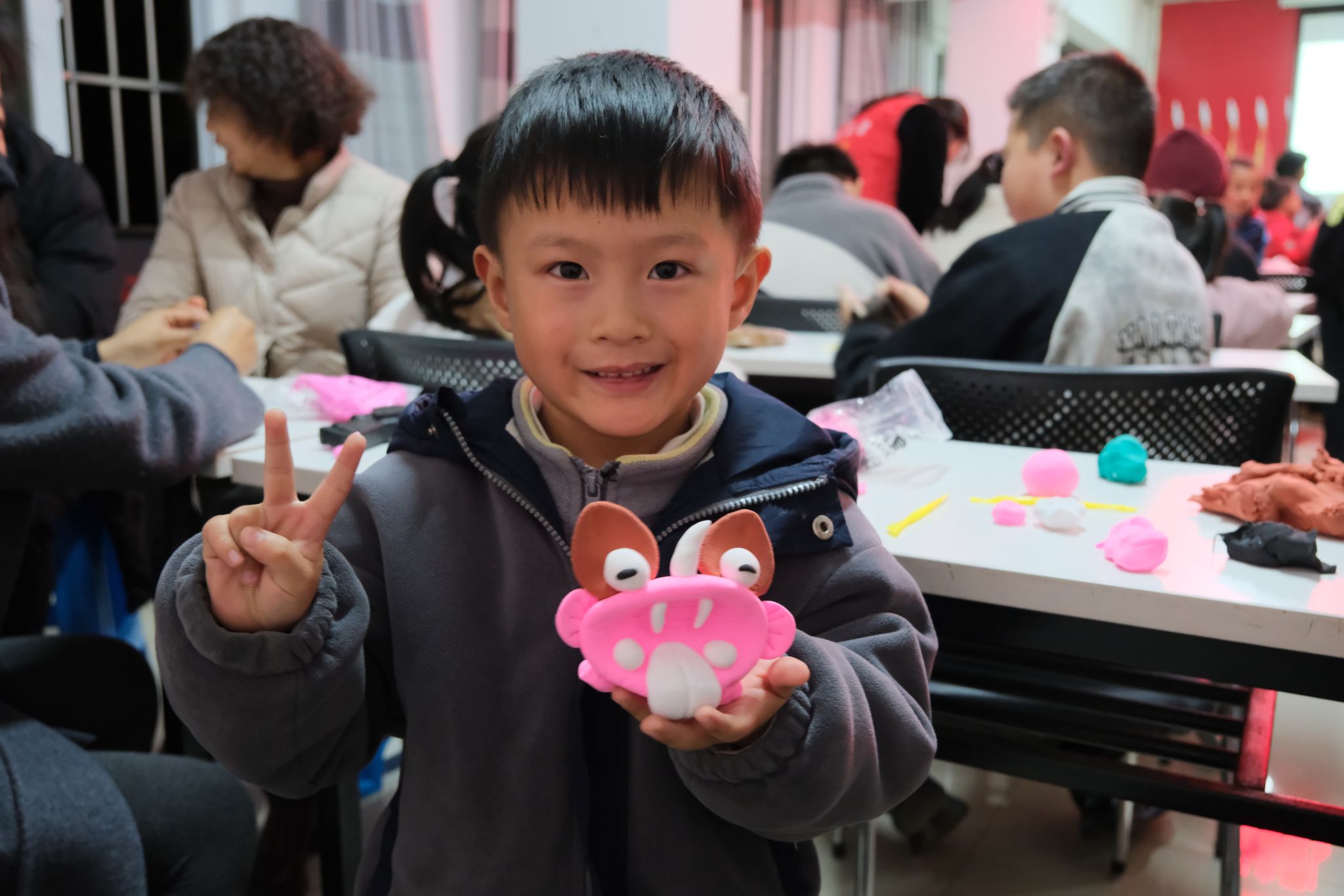 活动正式拉开帷幕,工作坊的师生首先为参与者讲解了瓦猫的民俗传统、造型特征,介绍传统瓦猫需经历揉泥、塑形、高温烧制等多道工序方能成型。为便于发挥创意,本次活动选用彩色超轻黏土替代传统陶土,并配备了安全且易于操作的塑形工具。材料分发完毕后,孩子们在讲解员的引导下,一步步将粘土捏制成型。不一会儿,一只只色彩斑斓、神态各异的瓦猫便跃然掌中。这些作品既保留了传统瓦猫的造型精髓,又融入了童趣盎然的想象力,让非遗技艺在传承中焕发新活力。