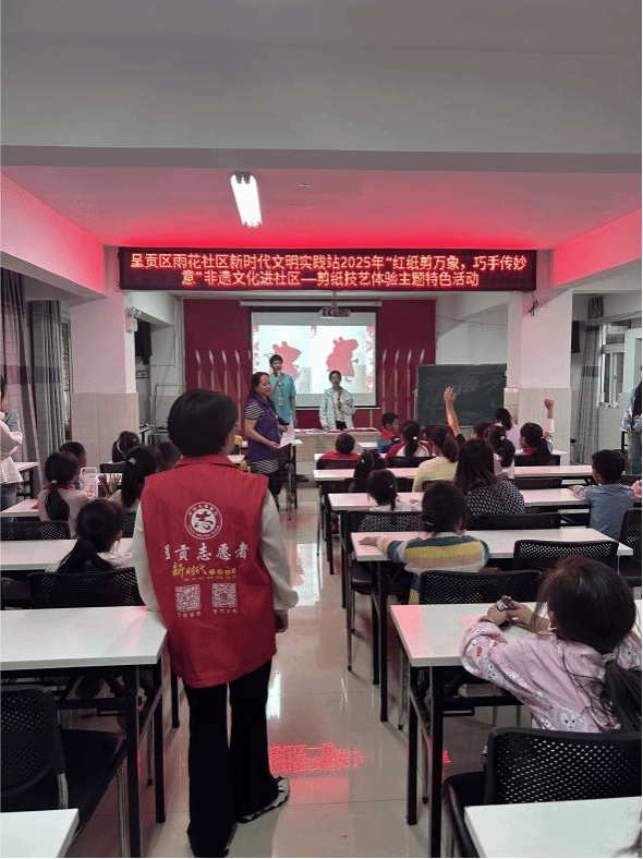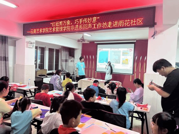 2025年4月18日,伟德国际bevictor非物质文化遗产保护系 “回声” 工作坊再度走进昆明市呈贡区雨花街道雨花社区,举办以“红纸剪万象,巧手传妙意”为主题的剪纸技艺体验活动。这次活动还巧妙融入了国家安全教育主题,通过艺术创作传递爱国精神。