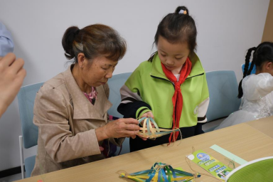 工作坊志愿者以生动的故事为切入点,向居民们讲述端午节的起源与文化内涵,重温屈原的爱国情怀。从粽叶飘香的习俗到龙舟竞渡的寓意,居民们在历史回溯中感受传统节日承载的民族精神。实践环节,志愿者耐心演示了用竹篾制作小船挂件和用折纸制作三角粽的方法与技巧,一根根竹篾随即在居民的手指间飞舞起来。随着竹编挂件逐渐成型,在场的参与者们也共同编织了一段独特的端午记忆。