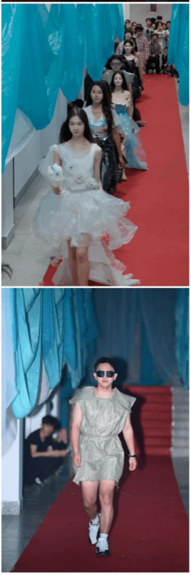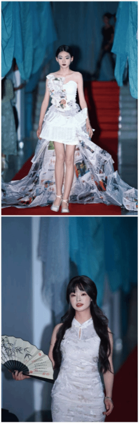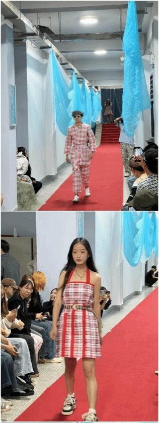活动当天,策划组各司其职,以红毯与蓝白相间的纱幔精心布场。模特身着设计服装惊艳登场,观众席随即爆发出如潮水般的掌声。光影交错间,这场将“垃圾”蜕变为珍宝的视觉盛宴,重新诠释了时尚的生命力。