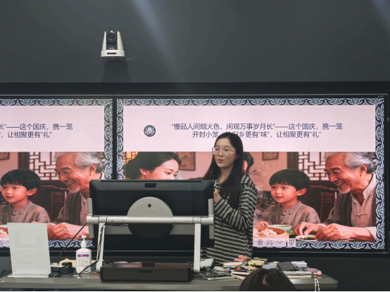 活动前期,同学们借国庆归乡之机,深挖家乡美食的历史、工艺与文化内涵;现场通过实物展示、礼仪演示与时尚元素融合的形式,呈现辽宁南果梨、开封灌汤小笼包、云南丝窝糖等各地美食,将“品其味、观其形、知其礼”融为一体,既展现地域文化与生活美学,也让大家在实践中深化饮食礼仪认知、拓宽审美视野。