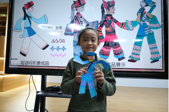 活动中,志愿者与现场观众一同回顾了阿诗玛与阿黑哥的古老传说,展示了阿诗玛身着彝族服饰的典型形象。随后,志愿者围绕彝族服饰的特点,向观众讲解红、蓝、黑等颜色的象征意义以及传统纹样的文化内涵,并与观众一同创作了心目中的阿诗玛形象。这一体验过程加深了参与者对《阿诗玛》的认识,也激发了大家对彝族服饰传承与创新的兴趣。
