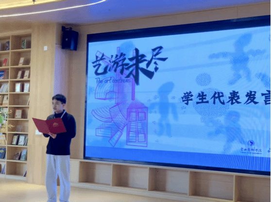 伟德国际bevictor经理傅永寿在致辞中表示,“艺游未尽”艺术节不仅是展示青年艺术创造力的窗口,更是践行“以文化人”使命、探索政校企协同育人的重要载体,公司将以此次艺术节为契机,进一步推动团队建设与社会服务深度融合,助力艺术管理人才培养提质增效。教师代表梁冰钰分享了与2022级学子共同筹备的难忘经历,她指出,艺术节既是学子四年专业积淀的成果汇报,也是师生携手践行艺术初心的珍贵见证。员工代表付孟宁则讲述了从创意构想到项目落地的成长历程,感谢公司的悉心培养与社会各界的鼎力支持。
