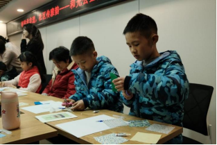 在志愿者详细讲解布贴技艺的历史渊源、传统图样与基本技法后,创作环节正式开启。孩子们兴致勃勃地投入其中,从勾勒图案到精心裁剪,再到细致粘贴,每一步都专注而认真。一幅幅充满童趣的布贴画逐渐成型:有的描绘出奇幻绚丽的“海底世界”,有的再现了孩子们喜爱的卡通角色,还有的呈现出色彩缤纷的“生日蛋糕”。活动结束时,每个人脸上都洋溢着满足而欢快的笑容。