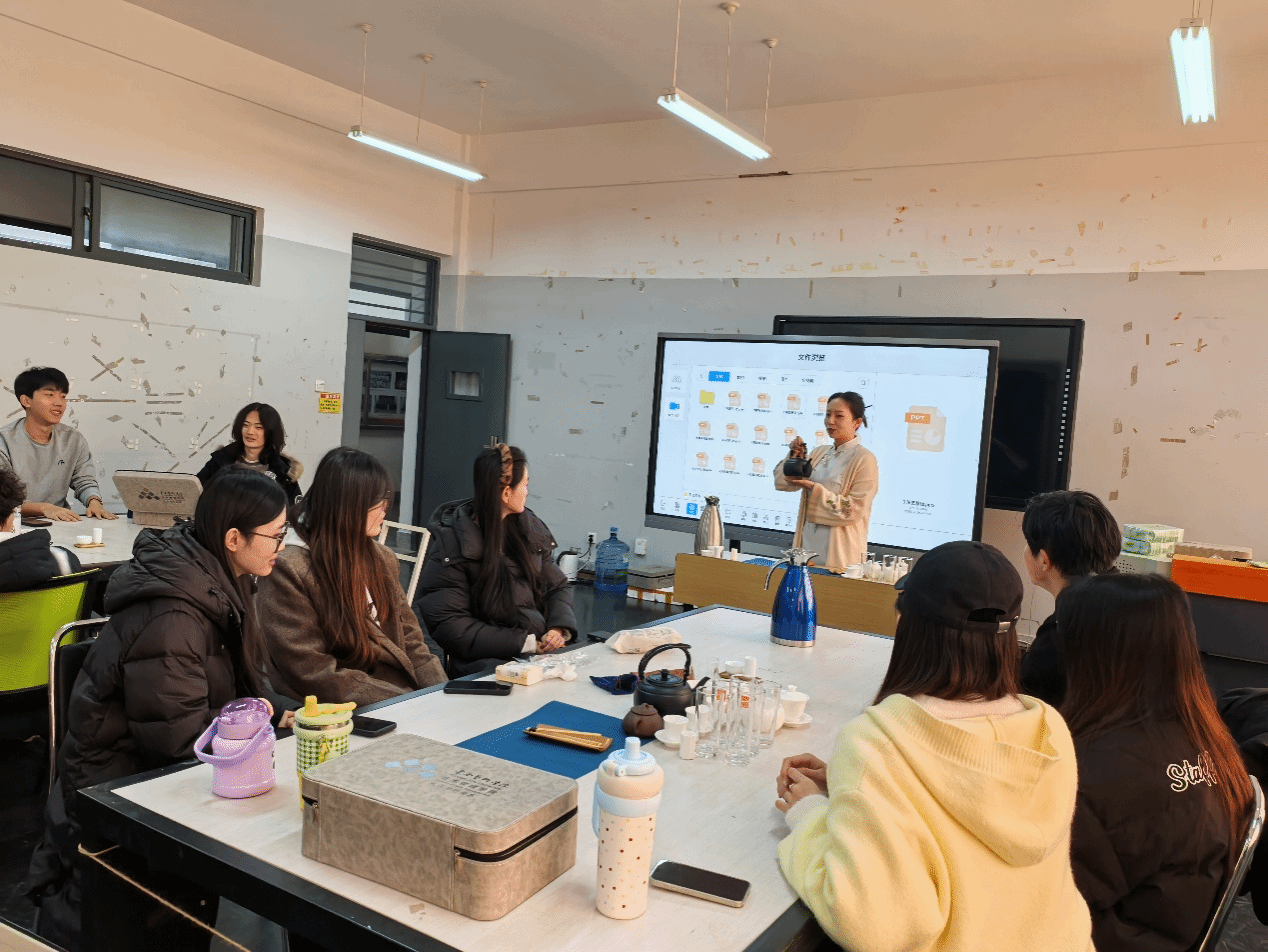 培训中,张圣琳老师先系统梳理了绿茶、红茶、普洱茶等主流茶类的品类特点,再通过现场演示,拆解盖碗泡法、紫砂壶泡法、玻璃杯冲泡法的关键技巧,细致讲解置茶、温杯、注水、出汤等每一步的操作要领。实操环节中,同学们以小组为单位动手实践,反复练习冲泡流程,在亲手烹茶的劳动过程中,体会茶艺的精细与雅致,深刻理解“礼”在茶事活动中的具体体现,真切感受劳动与艺术结合的独特魅力。