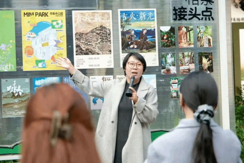 以“弥里有乐”为例,佟佳老师引导师生驻足于保留着老昆明砖瓦肌理的建筑前,详解项目如何在微更新过程中精准捕捉“弥勒寺片区”的历史记忆与民俗基因——从提取滇式民居的“坡屋顶”符号重构公共空间,到邀请本地非遗手艺人入驻打造“活态非遗工坊”,再到以“古火・新光”为主题策划市集活动串联传统节庆与现代消费需求。她指出,城市微更新绝非简单的物理空间改造,而是要通过 “文化解码——符号转化——功能适配” 的路径,让沉睡的在地资源在非标商业场景中 “苏醒”,既保留城市的 “烟火气”,又赋予空间新的文化生命力与商业活力。